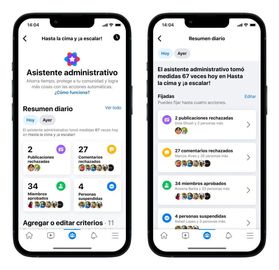 - Asistente administrativo: esta función ayuda a los administradores a moderar sus grupos eficientemente, ya que toma medidas automáticamente en función de los criterios específicos que ellos hayan establecido. Hoy compartimos nuevas actualizaciones:
