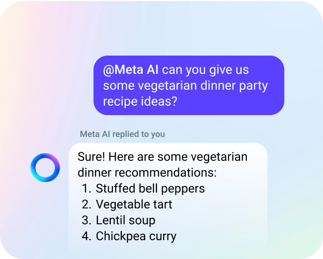 Meta AI es un nuevo asistente con el que puedes hablar como si fuera una persona. Utiliza un modelo personalizado basado en la tecnología Llama 2 y tiene acceso a información en tiempo real a través de una colaboración con Bing. Y Emul está integrado en Meta AI, para que puedas generar imágenes fotorrealistas de alta calidad de forma gratuita en cuestión de segundos.