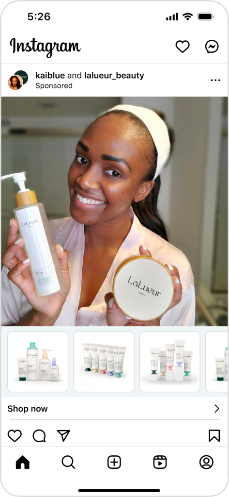 Este nuevo formato permite a los anunciantes subir una imagen o un vídeo del creador como activo «Héroe» para los anuncios de colecciones en Ads Manager. A continuación, el anuncio de colección tendrá una cabecera doble de anuncios de colaboración que ayudará a captar aún más a la audiencia aprovechando la autenticidad del contenido del creador.