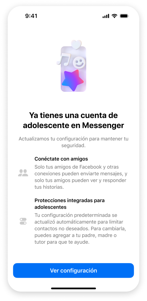 Queremos que los padres tengan tranquilidad cuando se trata de las experiencias de sus hijos en las aplicaciones de Meta, por lo que próximamente estarán disponibles las Cuentas de adolescentes en Facebook y Messenger. Las Cuentas de adolescentes en Facebook y Messenger ofrecerán protecciones automáticas similares para limitar contenido inapropiado y contactos no deseados, así como formas para que los padres controlen el tiempo que los adolescentes dedican a las apps. Comenzaremos a implementar las Cuentas de adolescentes de Facebook y Messenger para adolescentes en EE.UU., Reino Unido, Australia y Canadá y llevaremos la experiencia a adolescentes en otras regiones pronto.