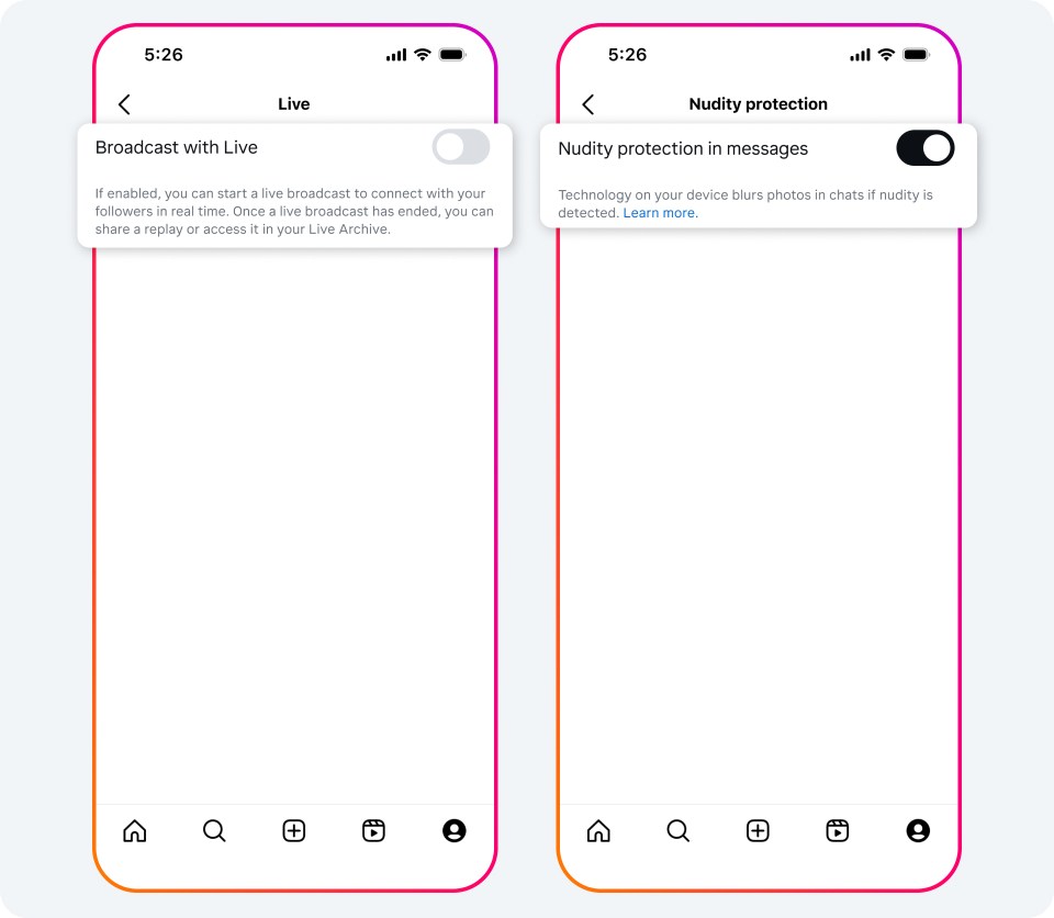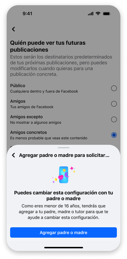 Sabemos que los padres están preocupados por las comunicaciones entre sus hijos y personas extrañas o posibles contactos no deseados hacia los adolescentes. Además de las protecciones integradas, agregamos nuevas restricciones para Instagram Live e imágenes no deseadas en mensajes directos. Con estos cambios, los menores de 16 años no podrán hacer transmisiones en vivo a menos que sus padres les den permiso. También, requeriremos que los adolescentes menores de 16 años obtengan permiso parental para desactivar nuestra función que difumina imágenes que contienen posible desnudez en mensajes directos. Estas actualizaciones estarán disponibles en los próximos meses.