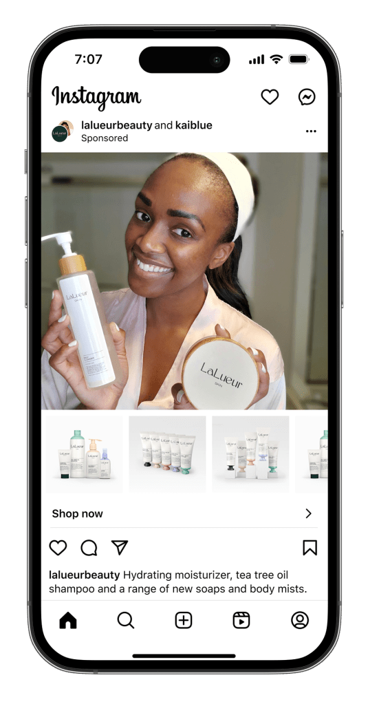 El año pasado, habilitamos una opción para que los anunciantes agreguen artículos de catálogo a una imagen o video destacado en sus anuncios, ayudando a los anunciantes a lograr un CPA un 9.3% más bajo al comercializar sus productos junto con su contenido creativo. Este semestre estamos llevando esta capacidad a Instagram Stories como una nueva ubicación y permitiendo a los anunciantes usar conjuntamente los anuncios de colaboración y los anuncios de catálogo Advantage+, llevando el poder del contenido de los creadores a esta experiencia.