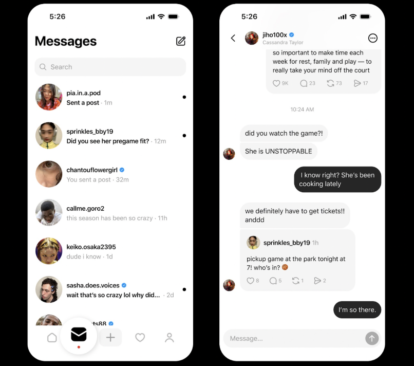 Threads fue creado para compartir perspectivas que generen conversaciones públicas vibrantes, pero a veces quieres llevar una conversación más allá, uno a uno. El envío de mensajes ha sido una de las características más solicitadas, y ahora puedes continuar conversaciones fácilmente en la aplicación y profundizar relaciones con otros.