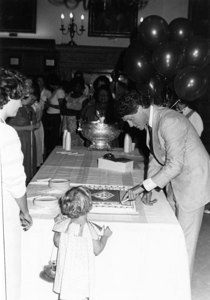 Chelsea Clinton (center) posts that she’s looking forward to “sharing many more happy years ahead, and cake too,” in this birthday greeting to her father, former President Bill Clinton. She shared this photo from her childhood on Clinton’s birthday on Monday.