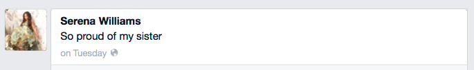 U.S. Open defending Women’s Champion, Serena Williams, sending a supportive message to her sister, Venus, who advanced after the first round of this year’s tournament. Venus Williams had returned after a back injury; she exited Wednesday.