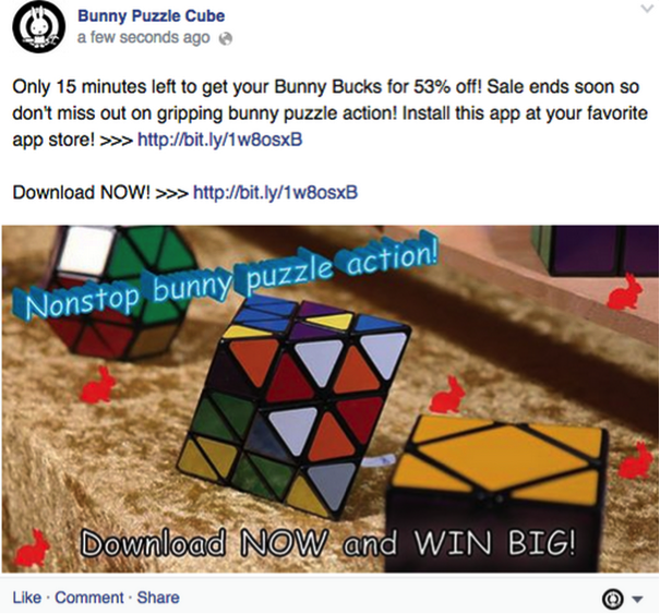 - Posts that solely push people to buy a product or install an app