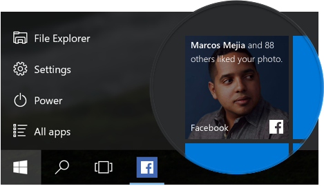 We built the new Windows 10 Facebook app so it’s fast and easy to access your favorite features. Facebook is one click away from the Start Menu, and the app starts and loads your News Feed much faster than previous Facebook desktop applications. You can stay up-to-date with Facebook through desktop notifications, and you can pin a new Facebook Live Tile which shows you the latest updates from your friends, family and Pages you follow. It’s also easy to share photos to Facebook straight from your favorite apps or File Explorer.