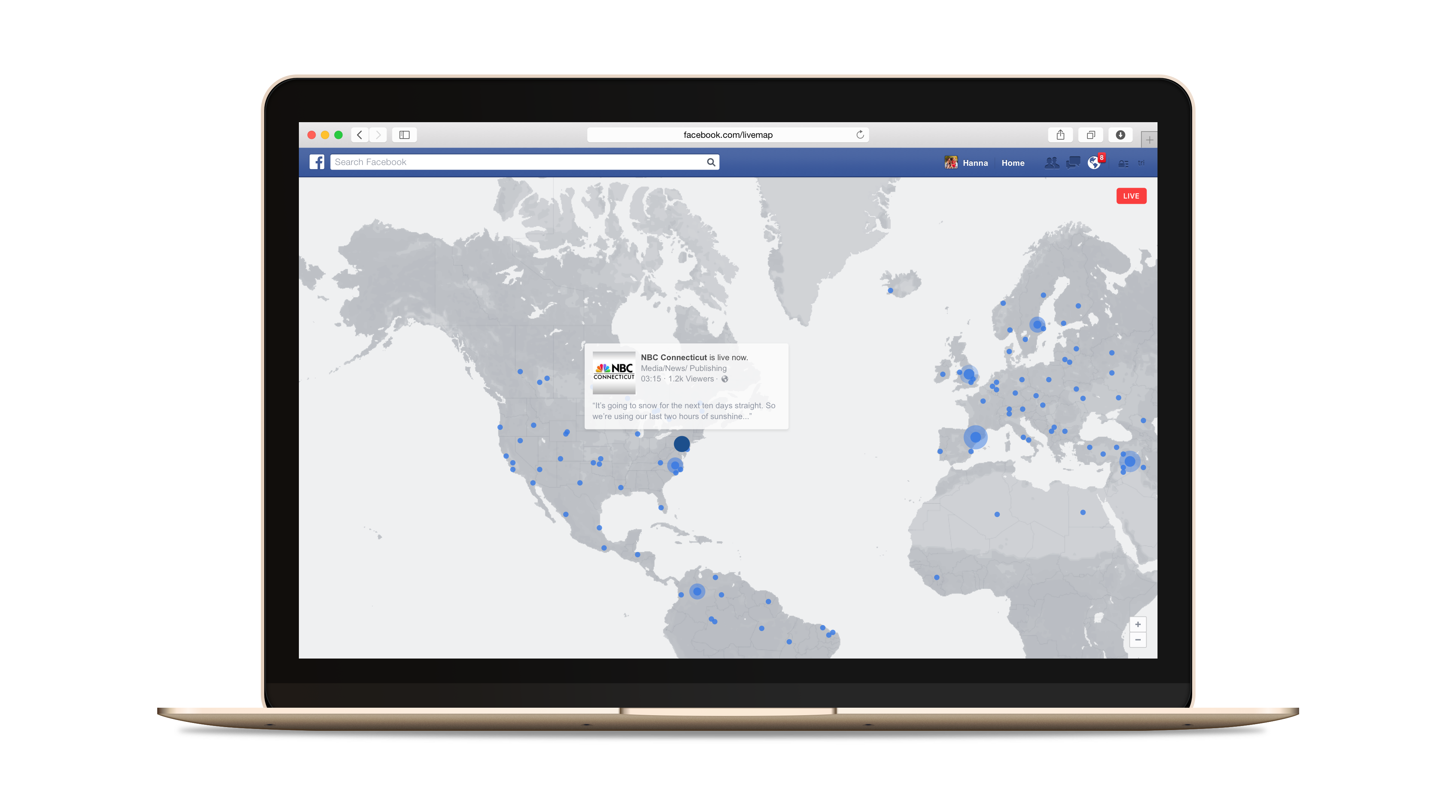 Finally, if you want a visual way to explore public live broadcasts that are currently happening around the world, today we’re releasing a Facebook Live Map on desktop. People in more than 60 countries can now share live video, and we’ve been inspired by all the different global broadcasts. The Facebook Live Map gives you a window into what’s happening in the world right now.