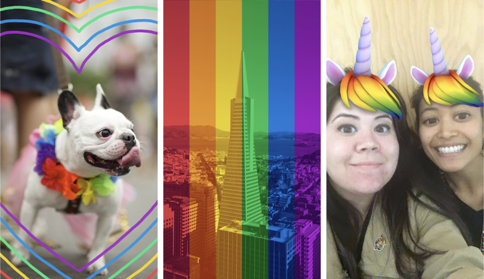 In Facebook Camera, you can find some new colorful, Pride-themed masks and frames. If you swipe to the left of News Feed, click on the magic wand to bring up camera effects and you’ll be able to find the effects in the mask and frame category.