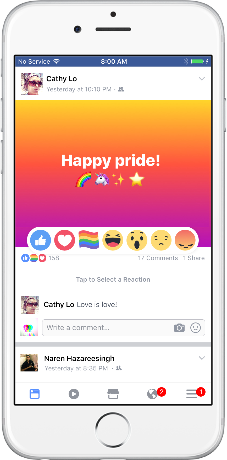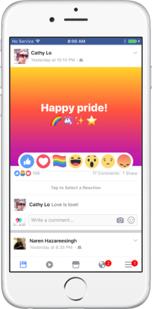 You may see a colorful, limited-edition Pride Reaction during Pride Month. When you choose this temporary rainbow reaction, you’ll be expressing your “Pride” to the post. People in major markets with Pride celebrations will be able to use a temporary rainbow reaction during Pride month. You can also like this page to access the reaction, however, because this is a new experience we’ve been testing, the rainbow reaction will not be available everywhere.
