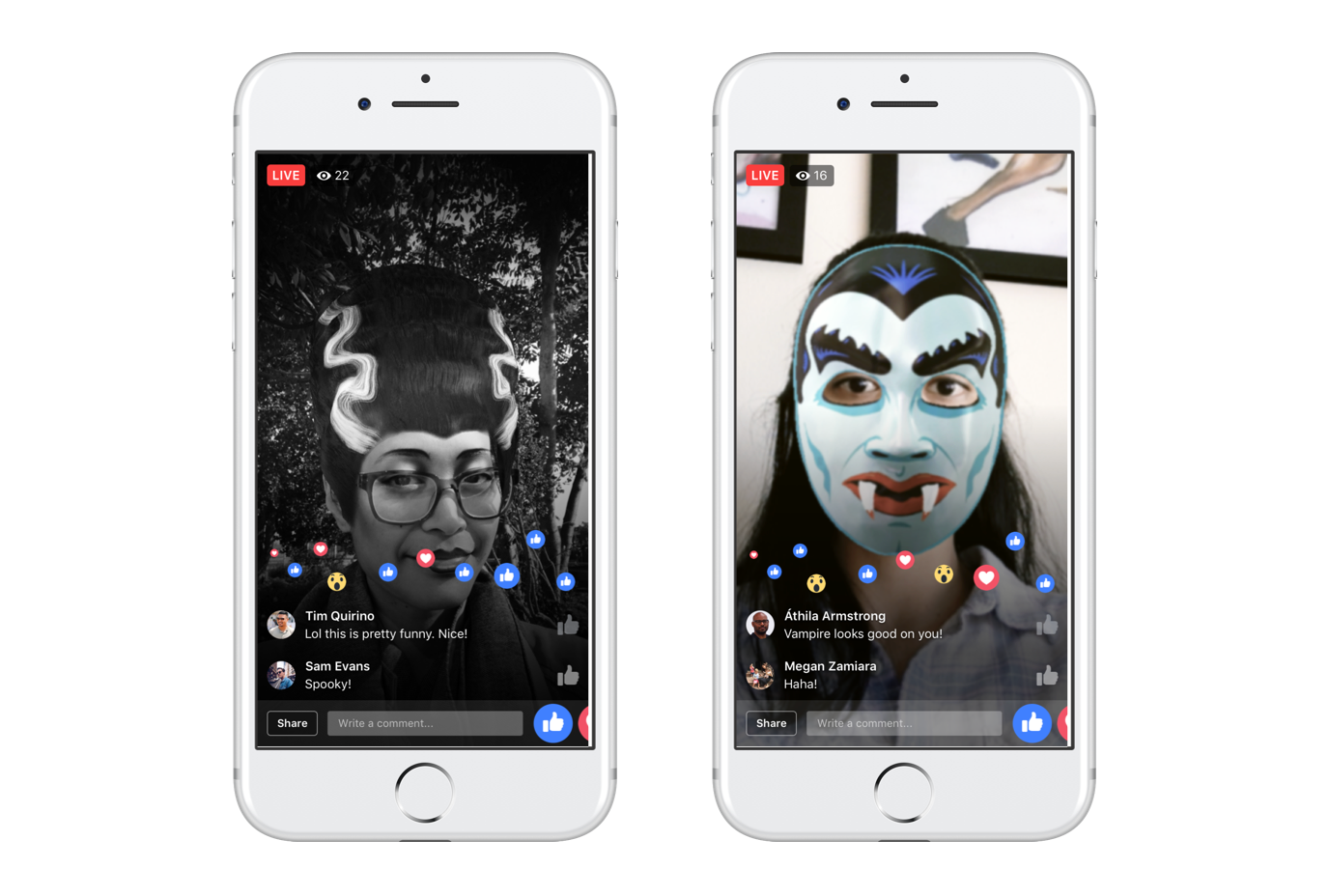 Broadcast Your Halloween Live: Facebook Live is also introducing Halloween effects that can be used in your Live videos. Try a scary mask, or tell a story using an effect. Go live with a friend and have fun bringing people into your Halloween moments.
