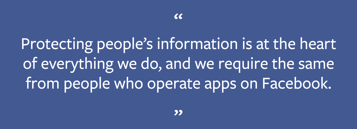 We are constantly working to improve the safety and experience of everyone on Facebook. In the past five years, we have made significant improvements in our ability to detect and prevent violations by app developers. Now all apps requesting detailed user information go through our App Review process, which requires developers to justify the data they’re looking to collect and how they’re going to use it – before they’re allowed to even ask people for it.