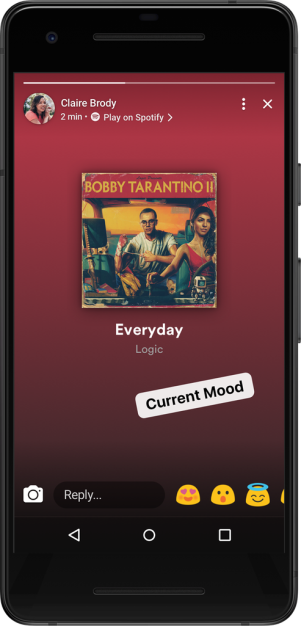 Just tap the share button in an app like Spotify to share what you’re listening to directly into the camera. From there you can edit and share to your story or feed. You don’t have to connect your Facebook or Instagram account to other apps in order to share to Stories.