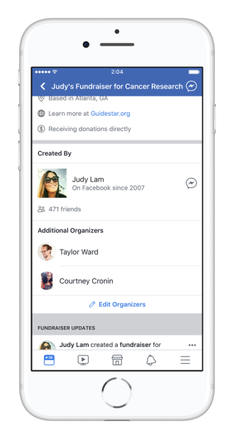 Just like you can add a co-admin or moderator to a Facebook Group or a co-host to your Facebook Event, you can now add up to three friends to be organizers of your fundraiser to help you manage it and rally more supporters to reach your fundraising goals.