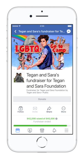 Brands and public figures use their Facebook Pages to connect with followers and fans, and now they can rally support around nonprofits as well. Nonprofits can now also start fundraisers on their Pages for their own causes. We’ve already seen momentum and success from Pages running fundraisers. Artists Tegan and Sara recently launched a Page fundraiser to help send 100 kids to LGBTQ summer camp in the US and Canada through the Tegan and Sara Foundation LGBTQ Camp Scholarship and in collaboration with the Ally Coalition.