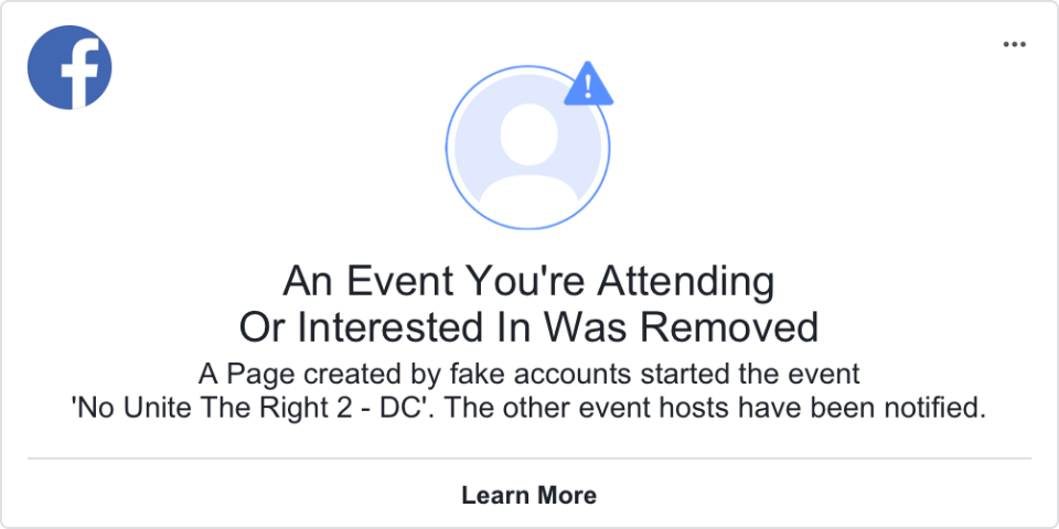 We found this activity as part of our ongoing efforts to identify coordinated inauthentic behavior. Given these bad actors are now working harder to obscure their identities, we need to find every small mistake they make. It’s why we’re following up on thousands of leads, including information from law enforcement and lessons we learned from last year’s IRA investigation. The IRA engaged with many legitimate Pages, so these leads sometimes turn up nothing. However, one of these leads did turn up something. One of the IRA accounts we disabled in 2017 shared a Facebook Event hosted by the “Resisters” Page. This Page also previously had an IRA account as one of its admins for only seven minutes. These discoveries helped us uncover the other inauthentic accounts we disabled today.