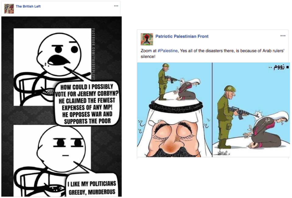 Based on FireEye’s tip, we started an investigation into “Liberty Front Press” and identified additional accounts and Pages from their network. We are able to link this network to Iranian state media through publicly available website registration information, as well as the use of related IP addresses and Facebook Pages sharing the same admins. For example, one part of the network, “Quest 4 Truth,” claims to be an independent Iranian media organization, but is in fact linked to Press TV, an English-language news network affiliated with Iranian state media. The first “Liberty Front Press” accounts we’ve found were created in 2013. Some of them attempted to conceal their location, and they primarily posted political content focused on the Middle East, as well as the UK, US, and Latin America. Beginning in 2017, they increased their focus on the UK and US. Accounts and Pages linked to “Liberty Front Press” typically posed as news and civil society organizations sharing information in multiple countries without revealing their true identity.