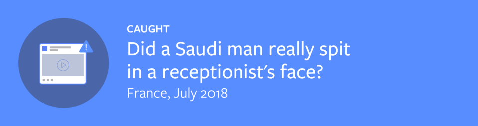This summer, a video featuring CCTV footage was re-shared by multiple accounts across several social networks. In the video, a man wearing a white robe and a shemagh, or head scarf, spits in the face of a blonde woman in what appears to be a hospital reception station. The accompanying caption reads, “Man from Saudi spits in the face of the poor receptionist at a Hospital in London then attacks other staff.”