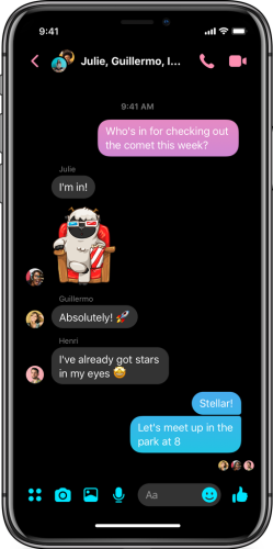 It can take time to get used to changes in an app you rely on every day, which is why we’re rolling out Messenger 4 in phases. We have a handful of new features we’re planning to introduce in the near future, like Dark Mode, a re-skinned interface that cuts down on the glare from your phone. So take your time, settle in, and we’ll be back with more soon.