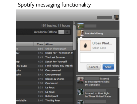 Specifically, we made it possible for people to message their friends what music they were listening to in Spotify or watching on Netflix directly from the Spotify or Netflix apps (see screen shots below), to message links to Dropbox folders (like a collection of photographs) from the Dropbox app, and to message receipts from money transfers through the Royal Bank of Canada app.
