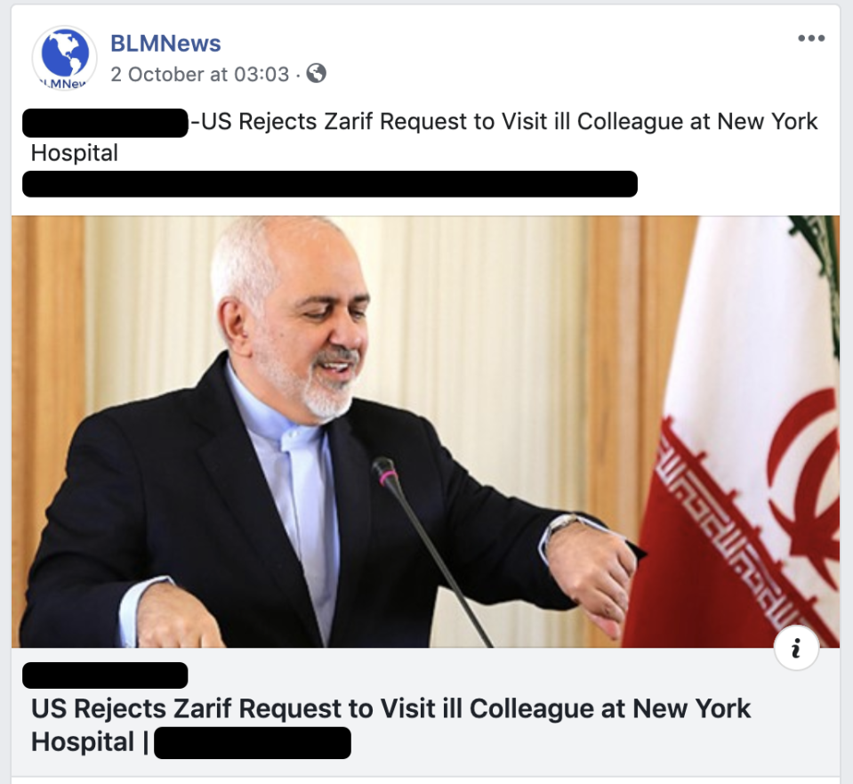 Additionally, we removed a small network of four Facebook accounts, three Pages and seven Instagram accounts that originated in Iran and focused mainly on the US. The individuals behind this activity posed as locals and used fake accounts to manage Pages and an app, and also to drive people to an off-platform domain. Rather than posting directly to one of their Pages, they used the app whose sole purpose appeared to be pushing content to a Page called BLMNews that masqueraded as a news entity. The Page admins and account owners typically posted about political issues including topics like race relations in the US, criticism of US and Israel’s policy on Iran, the Black Lives Matter movement, African-American culture and the Iranian foreign policy.