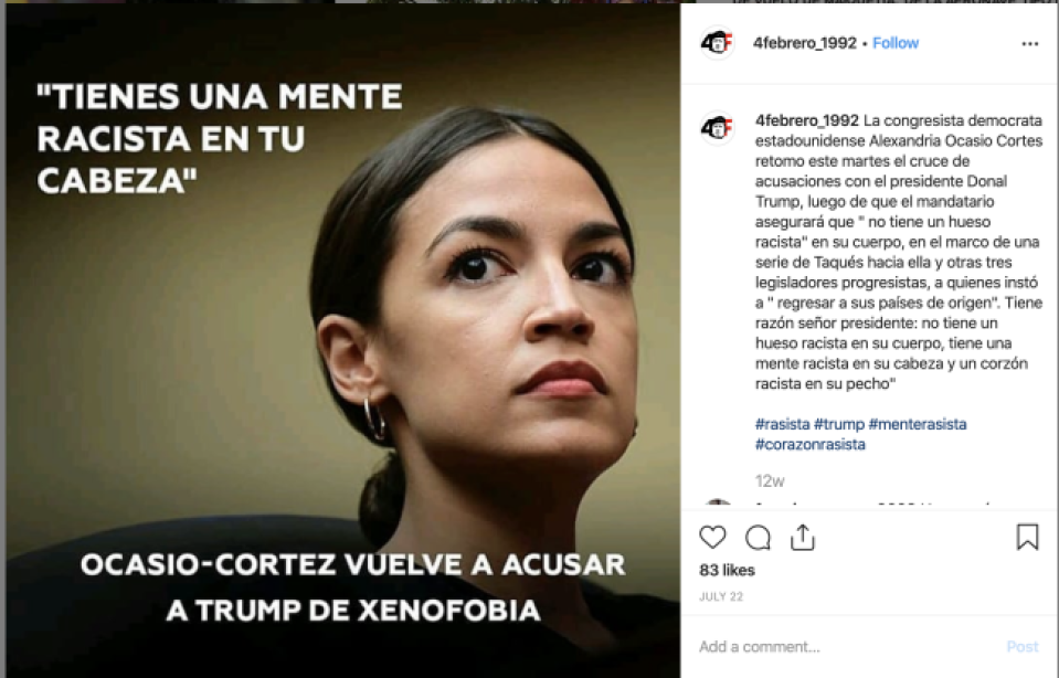 We also removed 38 Facebook accounts, 6 Pages, 4 Groups and 10 Instagram accounts that originated in Iran and focused on countries in Latin America, including Venezuela, Brazil, Argentina, Bolivia, Peru, Ecuador and Mexico. The Page administrators and account owners typically represented themselves as locals, used fake accounts to post in Groups and manage Pages posing as news organizations, as well as directed traffic to off-platform domains. They frequently repurposed Iranian state media stories on topics like Hezbollah, conflict between Iran and Saudi Arabia, tensions between Israel and Palestine and Iran and the US, war in Yemen, as well as posted content tailored for a particular country including domestic news, geopolitics and public figures.