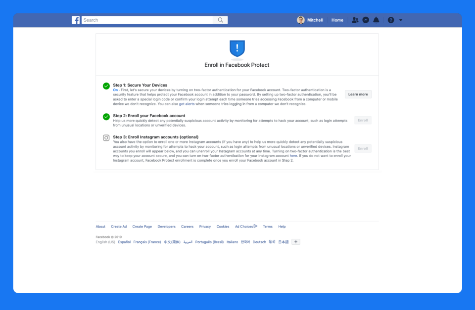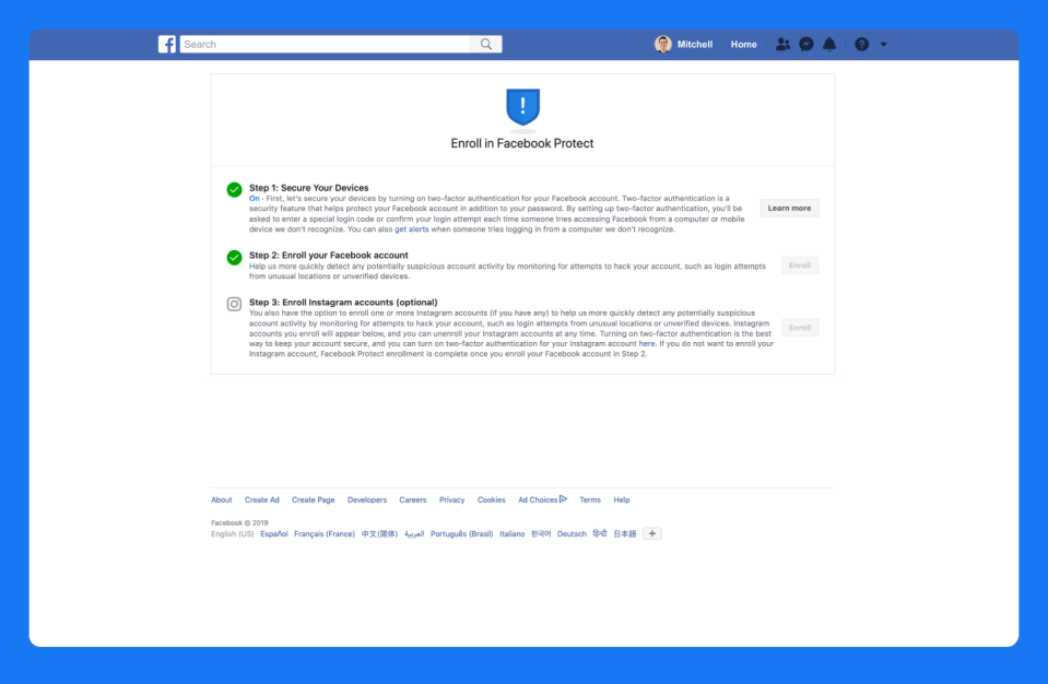 Beginning today, Page admins can enroll their organization’s Facebook and Instagram accounts in Facebook Protect and invite members of their organization to participate in the program as well. Participants will be required to turn on two-factor authentication, and their accounts will be monitored for hacking, such as login attempts from unusual locations or unverified devices. And, if we discover an attack against one account, we can review and protect other accounts affiliated with that same organization that are enrolled in our program. Read more about Facebook Protect and enroll here.