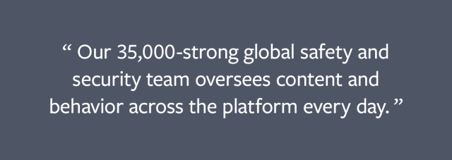 But our team is not working alone; it’s backed up by our 35,000-strong global safety and security team that oversees content and behavior across the platform every day.