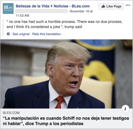 We also removed 610 accounts, 89 Facebook Pages, 156 Groups and 72 Instagram accounts that originated in Vietnam and the US and focused primarily on the US and and some on Vietnam, Spanish and Chinese-speaking audiences globally. This activity primarily focused on The BL, a US-based media company, and its Pages, which were operated by individuals in the US and Vietnam. The people behind this activity made widespread use of fake accounts — many of which had been automatically removed by our systems — to manage Pages and Groups, automate posting at very high frequencies and direct traffic to off-platform sites. Some of these accounts used profile photos generated by artificial intelligence and masqueraded as Americans to join Groups and post the BL content. To evade our enforcement, they used a combination of fake and authentic accounts of local individuals in the US to manage Pages and Groups. The Page admins and account owners typically posted memes and other content about US political news and issues including impeachment, conservative ideology, political candidates, elections, trade, family values and freedom of religion.