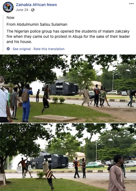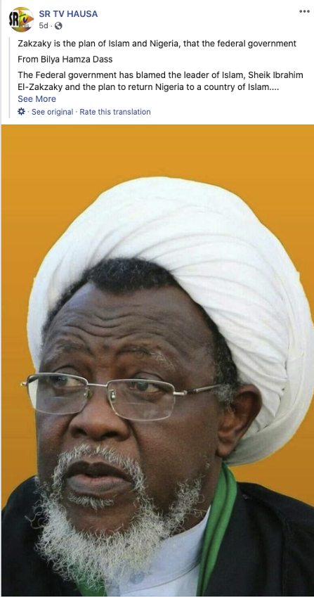 The people behind this activity used fake and duplicate accounts to manage Groups and Pages posing as independent news entities, and to drive people to their off-platform sites. Many of these accounts used stock images and photos of Ibrahim Zakzaky, the head of Nigeria’s Islamic Movement (IMN), Ayatollah Khomeini and Qasem Soleimani. This network amplified particular hashtags including #FreeZakzaky after the arrest of IMN’s founder. The Page admins and account owners posted primarily in Hausa, and also in English and Arabic about local news and events including IMN being a peaceful movement, protests across Nigeria, and criticism of the Nigerian armed forces, police, President Buhari and the ban of IMN.