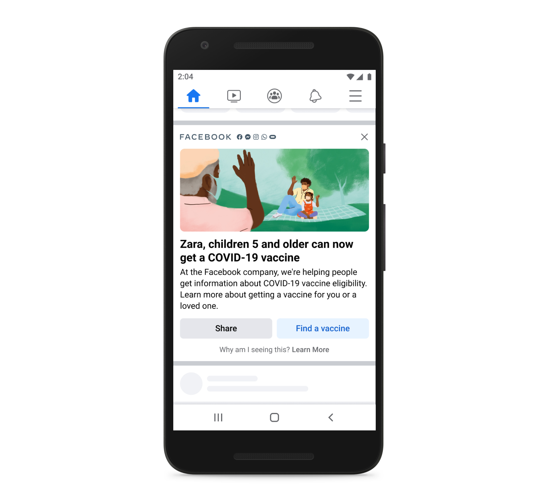 - Following the FDA’s authorization of COVID-19 vaccination for children, we’re announcing steps to promote reliable information to parents on our apps, including in-feed messages for more communities and new ad campaigns.
