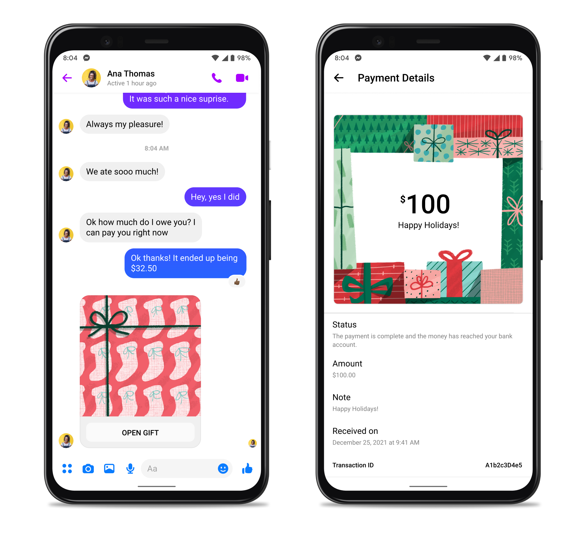 - We’re also rolling out holiday-themed backgrounds and gift wrap on Messenger using Facebook Pay on Android devices.