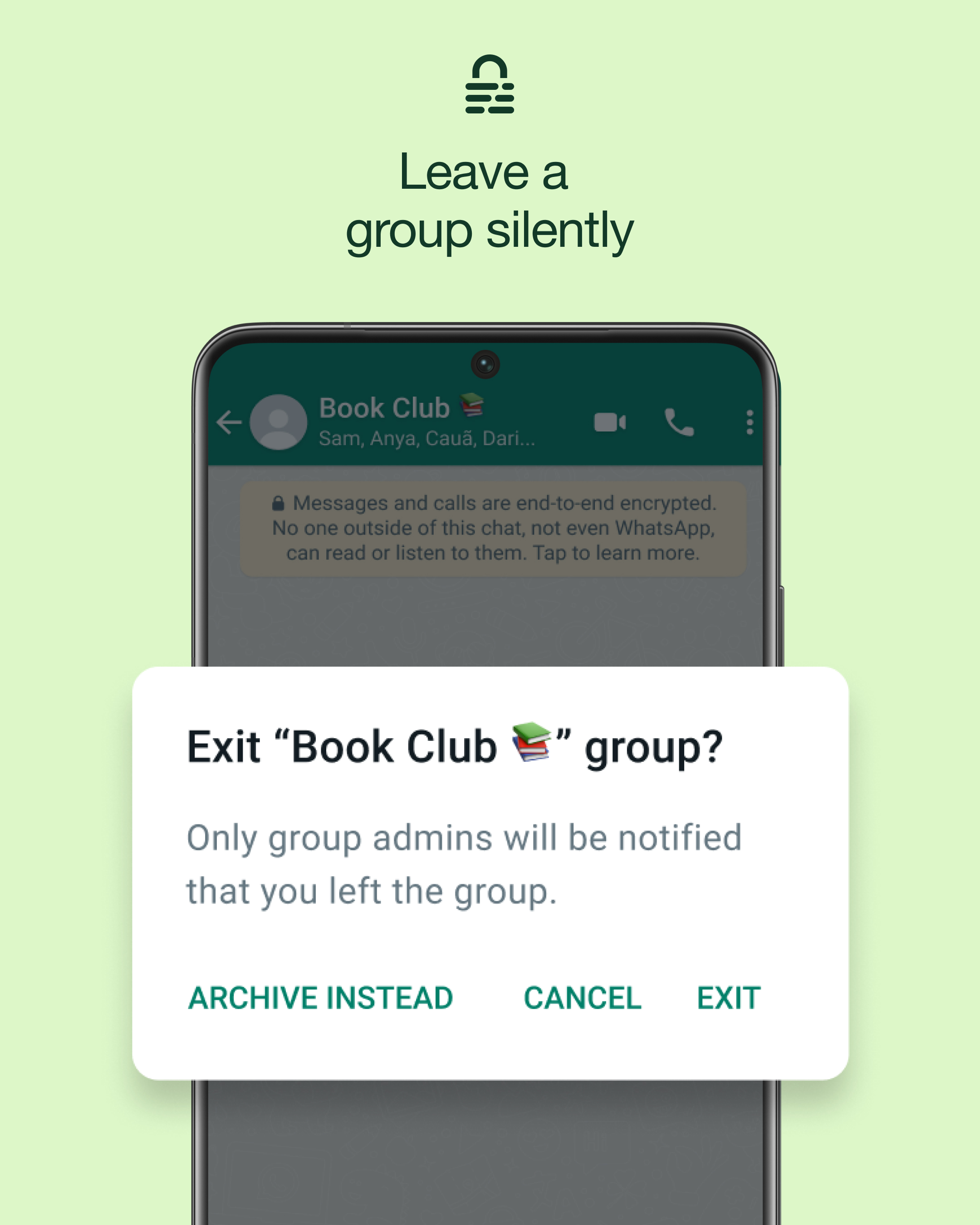 We love our group chats but some are not forever. We’re making it possible to exit a group privately without making it a big deal to everyone. Now, instead of notifying the full group when you are leaving, only the admins will be notified. This feature will start to roll out to all users this month.