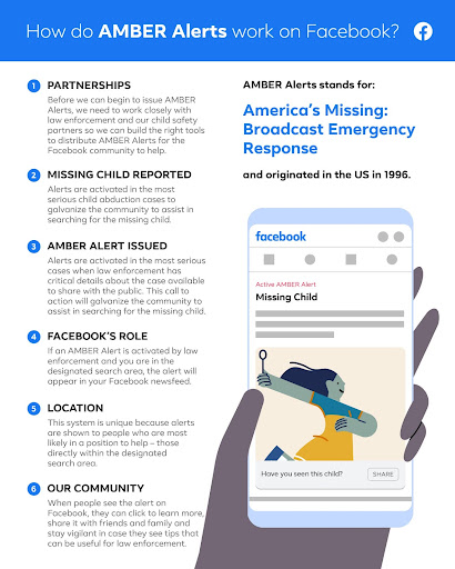 Today, we are bringing AMBER Alerts to Facebook and Instagram in Nigeria, launched in partnership with the National Agency for the Prohibition of Trafficking in Persons (NAPTIP) to increase the chances of finding missing children by increasing the number of people on the lookout.