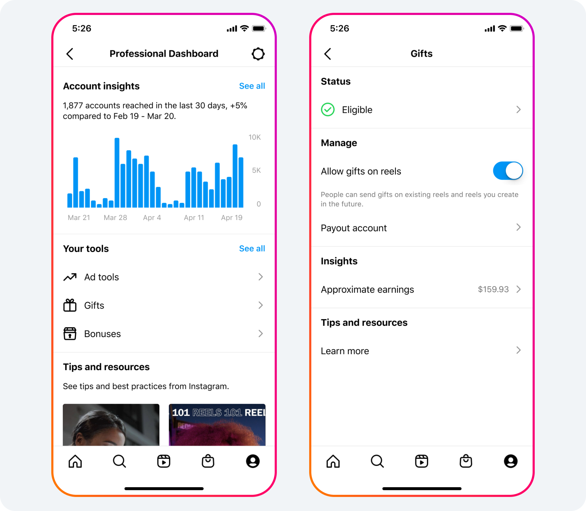 We’re introducing gifts on Instagram, starting with Reels, so creators have a new way to earn money from fans who love their Reels. To support their favorite creators, fans can send gifts on Reels by purchasing Stars within Instagram. We’re testing this with a small group of creators in the US first, and hope to expand to more creators soon.