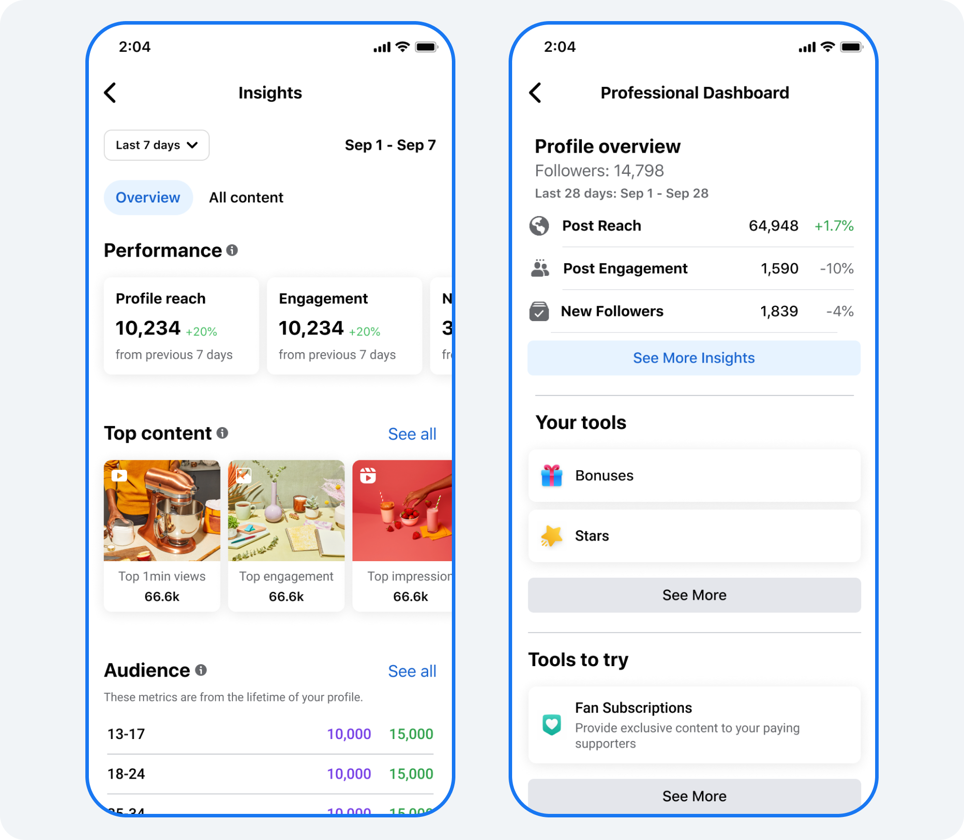 We’re launching professional mode for Facebook profiles, a new profile setting that allows creators around the world to build a public presence while maintaining their personal Facebook experience. Professional mode offers creators, and anyone that wants to become a creator, a set of tools and opportunities to begin growing a global community from their personal profile. With professional mode, creators can become eligible to earn money through Stars, ads on Facebook Reels, in-stream ads and Reels Play. They will also have access to content and audience analytics, educational resources and more.