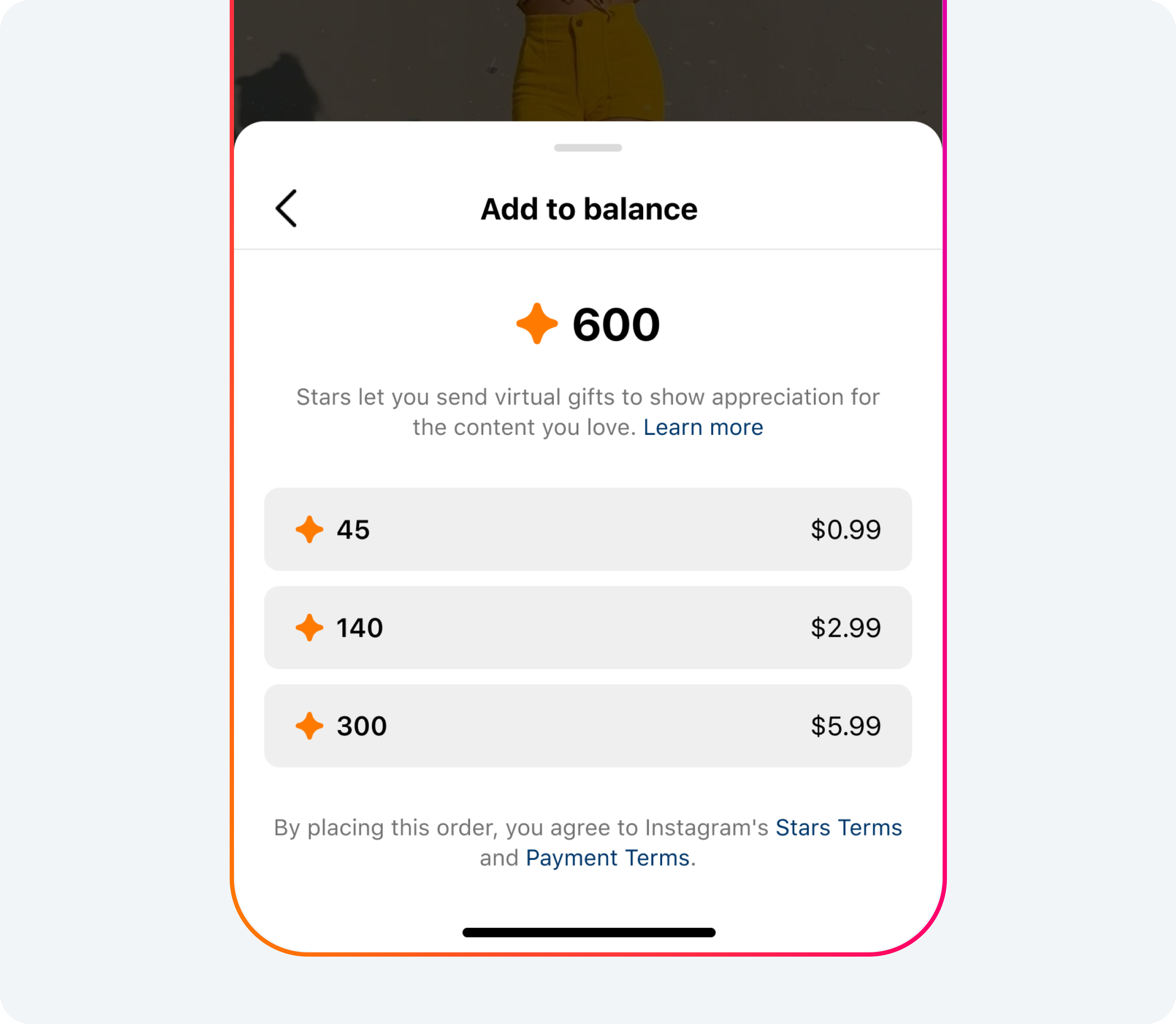 • Your followers can purchase gifts for you directly on Instagram, which can result in earning money, using Stars to show their appreciation.