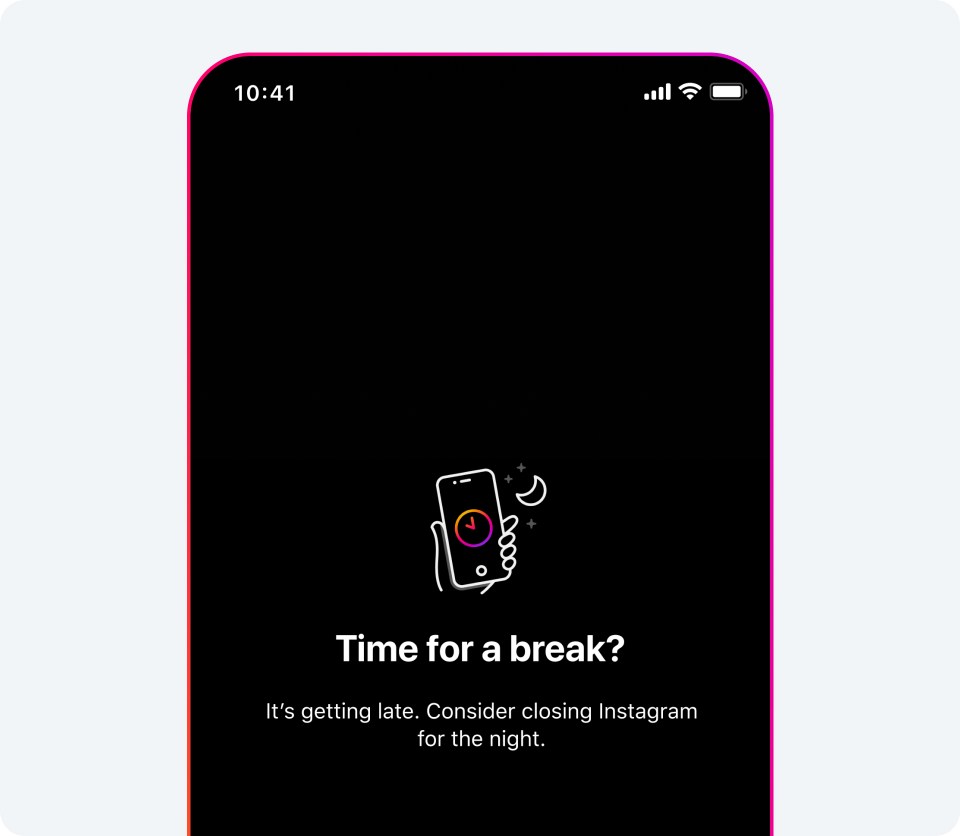 Sleep is important, particularly for young people, so we’re launching new nighttime nudges that will show up when teens have spent more than 10 minutes on Instagram in places like Reels or Direct Messages late at night. They’ll remind teens that it’s late, and encourage them to close the app.