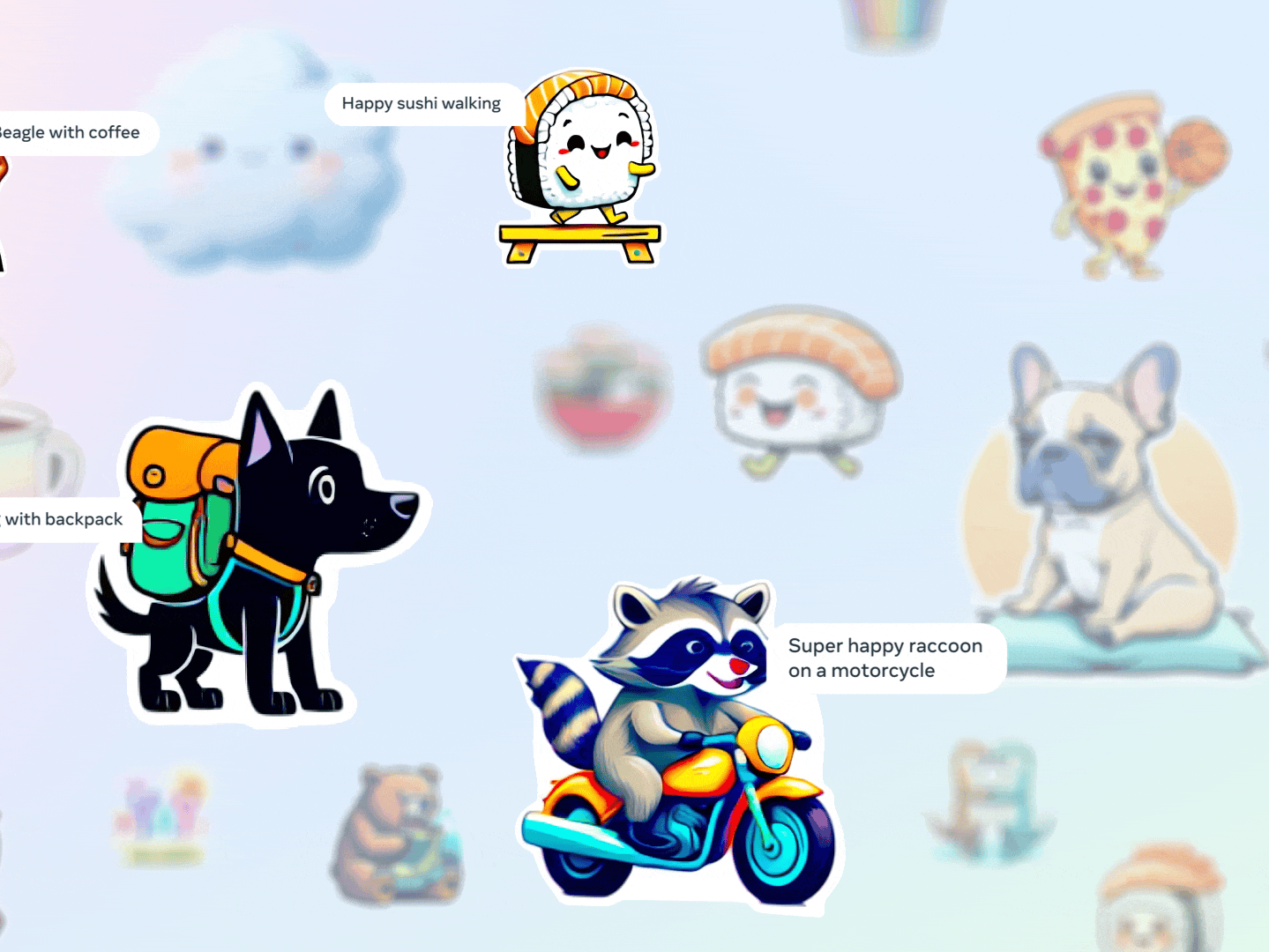 Billions of stickers are sent across our platforms every month, adding another fun and creative way for people to communicate and express themselves. Today, we announced new AI stickers that enable you to effortlessly generate customized stickers for your chats and stories. Using technology from Llama 2 and our foundational model for image generation called Emu, our AI tool turns your text prompts into multiple unique, high-quality stickers in seconds. This new feature, which is rolling out to select English-language users over the next month in WhatsApp, Messenger, Instagram, and Facebook Stories, provides infinitely more options to convey how you’re feeling at any moment. AI stickers will roll out to select English language users over the next month.
