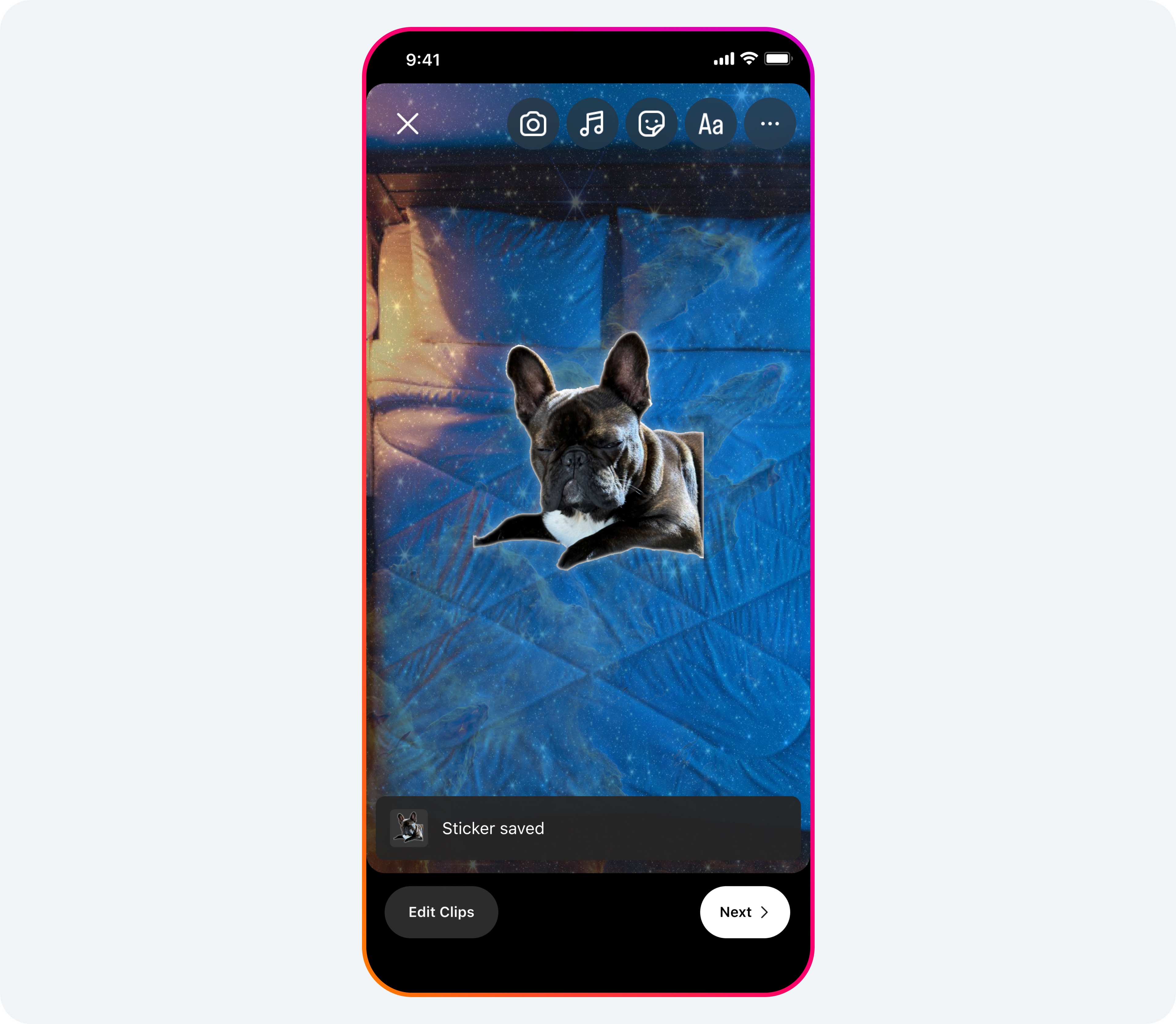 To help you make more unique Reels and stories, we’re testing the ability to create custom stickers from your own photos and videos in your camera roll, or from eligible photos and videos you see on Instagram. We’re also starting to test the ability to make custom stickers from videos. The ability to create custom stickers takes learnings from our Segment Anything AI model.