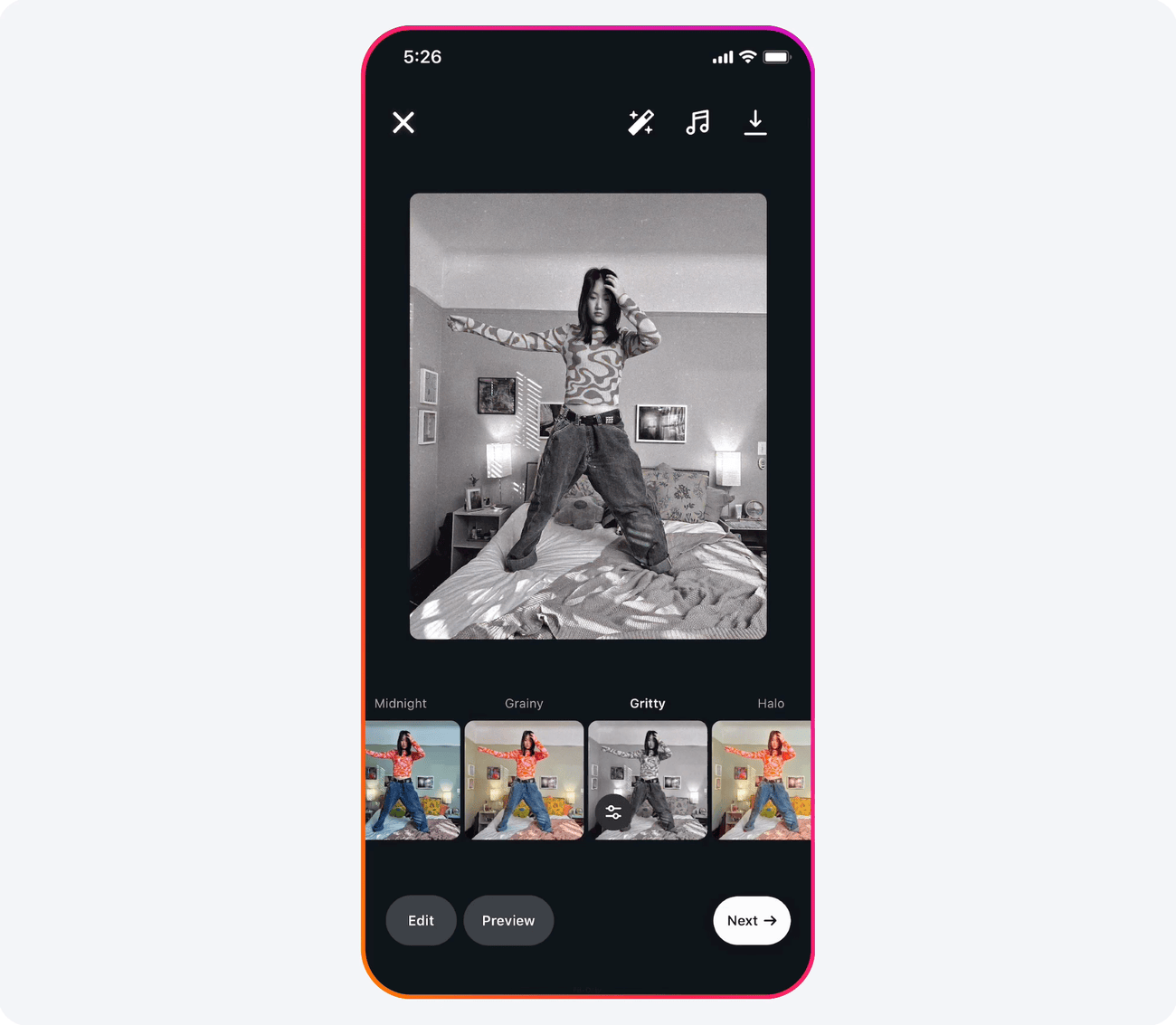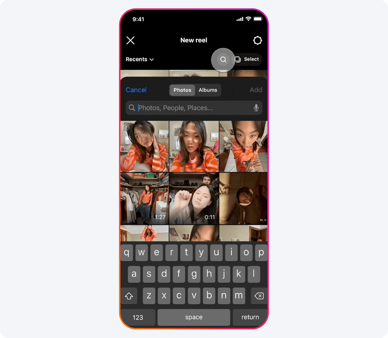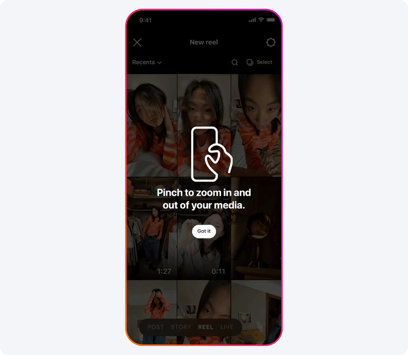 We’ve also simplified the way you post to make it easier to find the tools you need while editing. Find what you need more easily from your camera roll with better previews, the ability to zoom and search.
