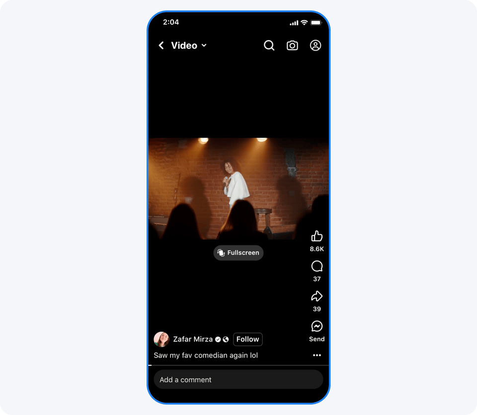 When you tap on a video anywhere on the Facebook app, you’ll now consistently see a fullscreen, vertically oriented video. Previously, depending on the length of the video or where you were watching, you may have seen horizontal videos or videos that played in a Feed-like player.