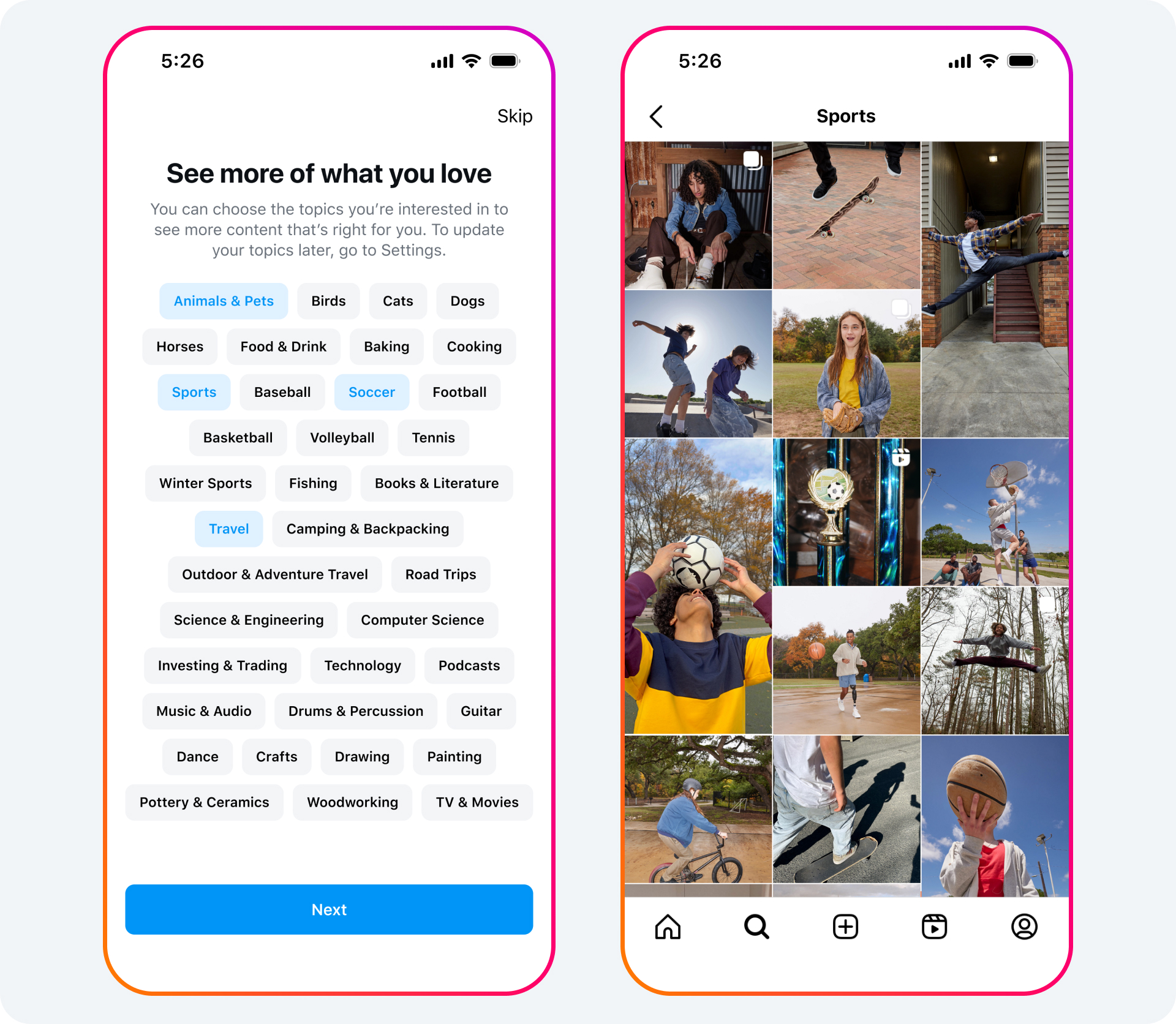 We know parents want to feel confident that their teens can use social media to connect with their friends and explore their interests, without having to worry about unsafe or inappropriate experiences. We understand parents’ concerns, and that’s why we’re reimagining our apps for teens with new Teen Accounts. This new experience is designed to better support parents, and give them peace of mind that their teens are safe with the right protections in place. Teens will also get access to a new feature, made just for them, that lets them select topics they want to see more of in Explore and their recommendations so they can focus on the fun, positive content they love.