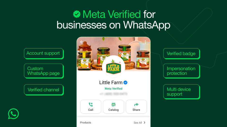 Millions of small businesses use the WhatsApp Business app in India, and they frequently tell us that they want to stand out and build credibility with their customers. Now, Meta Verified is available to all eligible small businesses in India using the WhatsApp Business app. With Meta Verified, businesses that choose to subscribe and demonstrate their authenticity will receive a verified badge, impersonation protection, account support, and premium features that help amplify their brand online and make it more efficient to chat with customers. The same badge will appear on their WhatsApp Channels and Business pages, making it easy to share on social media and websites.