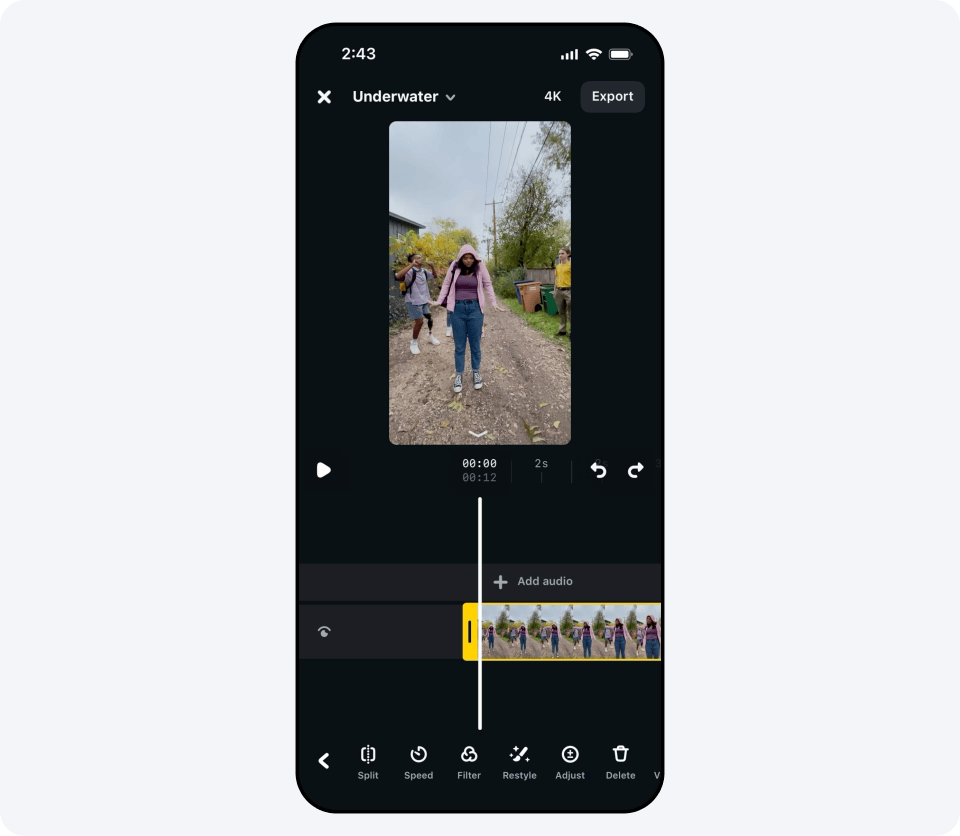 Our new AI video editing feature is intuitive and easy to use, so anyone can make high-quality video edits without video-editing expertise. First, upload a video to the Meta AI app, the Meta.AI website or Edits app. Then, explore more than 50 editing prompts you can use to transform 10 seconds of your video for free for a limited time.